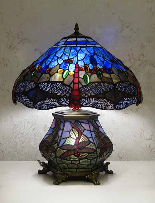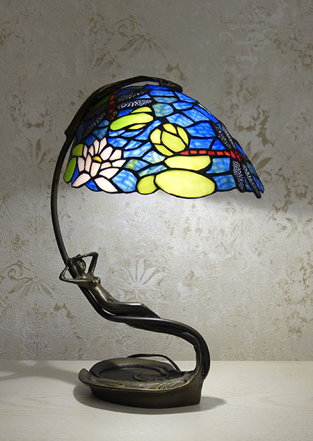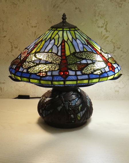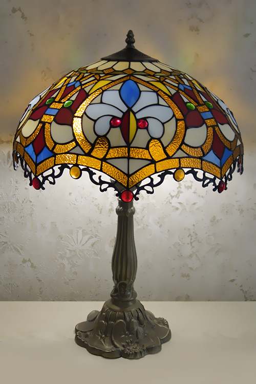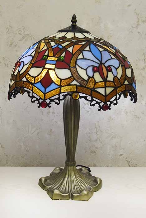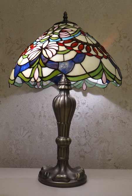 Люстры, торшеры, бра, ночники, настольные лампы, витражи, витражные колонны, каминные экраны - изделия из кусочков стекла, часы, уличные светильники: в стиле Тиффани.