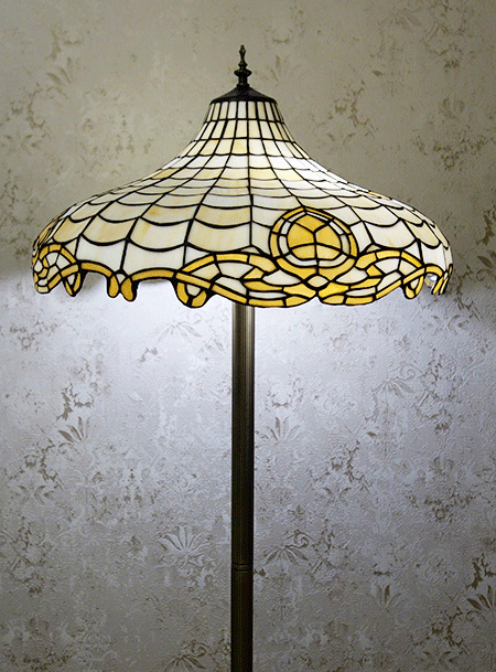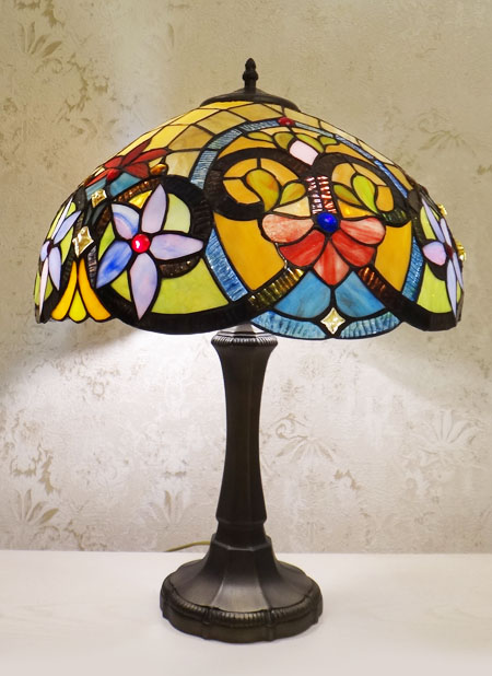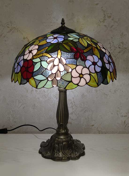 Люстры, торшеры, бра, ночники, настольные лампы, витражи, витражные колонны, каминные экраны - изделия из кусочков стекла, часы, уличные светильники: в стиле Тиффани.