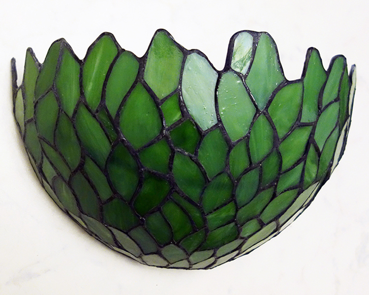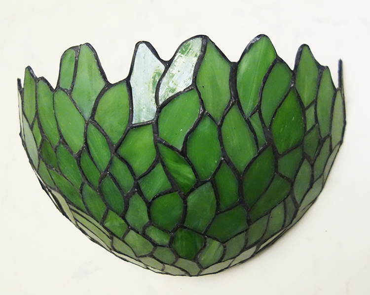 Витражный светильник в технике тиффани. Особенность исполнения: стекла спаяны внахлест, имеет эффект дополнительного объема. Стекло, витраж.