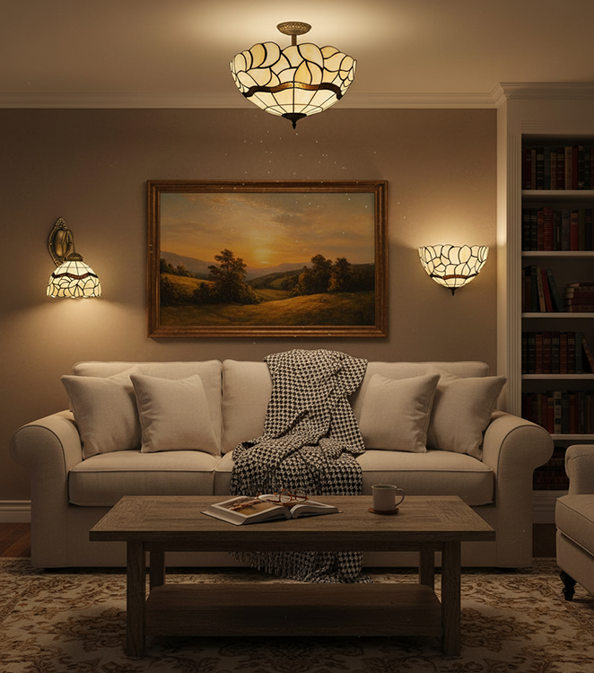 Светильник пристенный из витражного стекла в стиле тиффани, ручная работа. Основной фон - цвет слоновой кости. Идеально подходит для классических интерьеров.