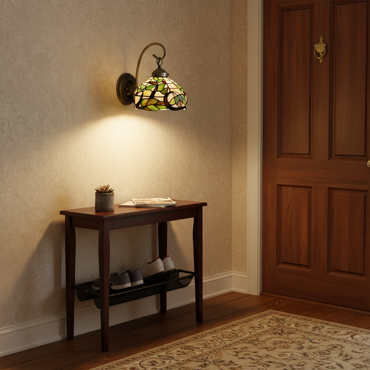 Ищете элегантное решение для освещения? Представляем бра в стиле Тиффани с изысканным узором "листва". Это не просто светильник, а настоящее произведение искусства, которое добавит вашему интерьеру нотку утонченности и природной красоты. Мягкий, рассеянный свет, создаваемый витражными элементами, наполнит комнату уютной атмосферой.