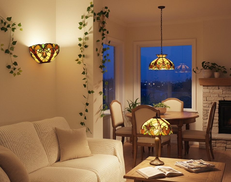 Декоративный акцент: Настенные светильники Тиффани служат не только для освещения, но и в качестве декоративного элемента, дополняющего дизайн интерьера