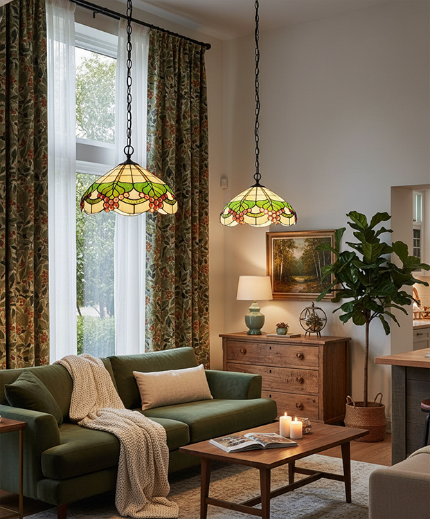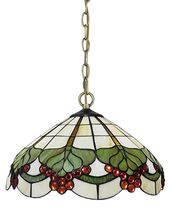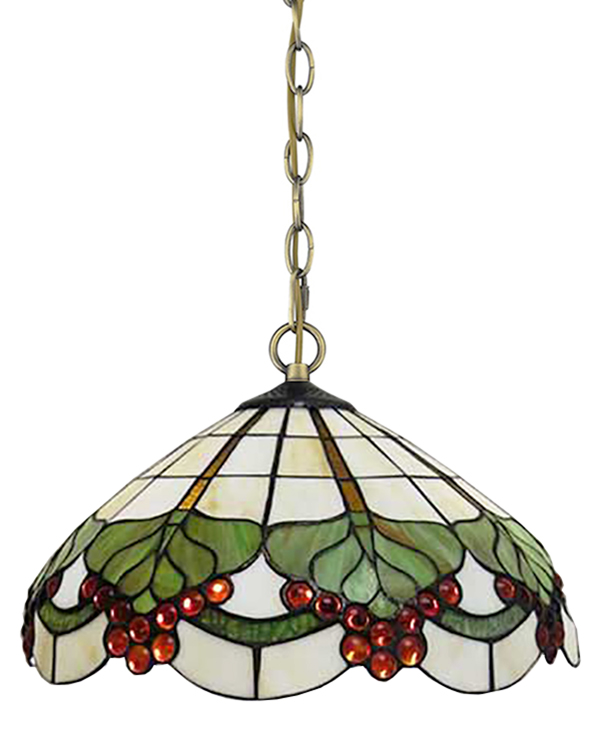 Подвесная люстра Тиффани. Создана вручную. Витражное цветное стекло. Оригинальный рисунок плафона подойдет для классического интерьера загородного дома, гостиной, спальни, коридора, прихожей. Фурнитура бронзового цвета.