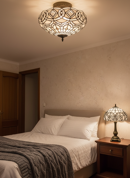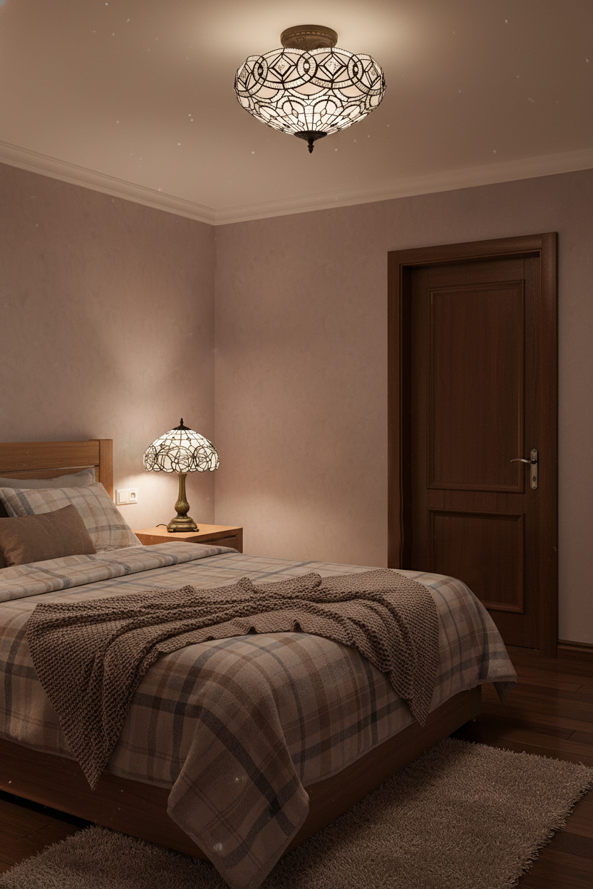 Важным аспектом при выборе люстры в стиле Тиффани является ее масштаб и пропорции. Она должна гармонично вписываться в пространство, не перегружая интерьер, но и не теряясь на его фоне. Для просторных залов подойдут более крупные и выразительные модели с множеством витражных панелей, которые создадут эффектный акцент и станут центром композиции. В небольших помещениях предпочтительнее выбирать более компактные и изящные варианты, чтобы сохранить ощущение легкости и воздушности, не нарушая общей гармонии. При этом стоит учитывать высоту потолков и расположение мебели, чтобы свет равномерно распределялся и создавал комфортную атмосферу.
