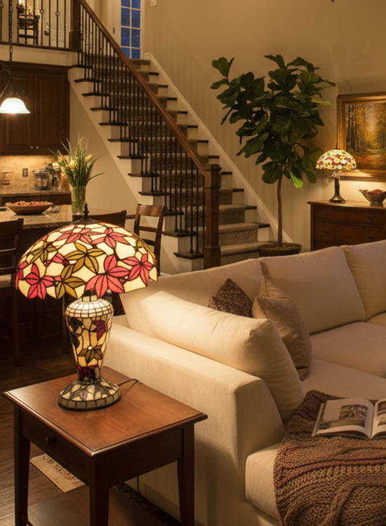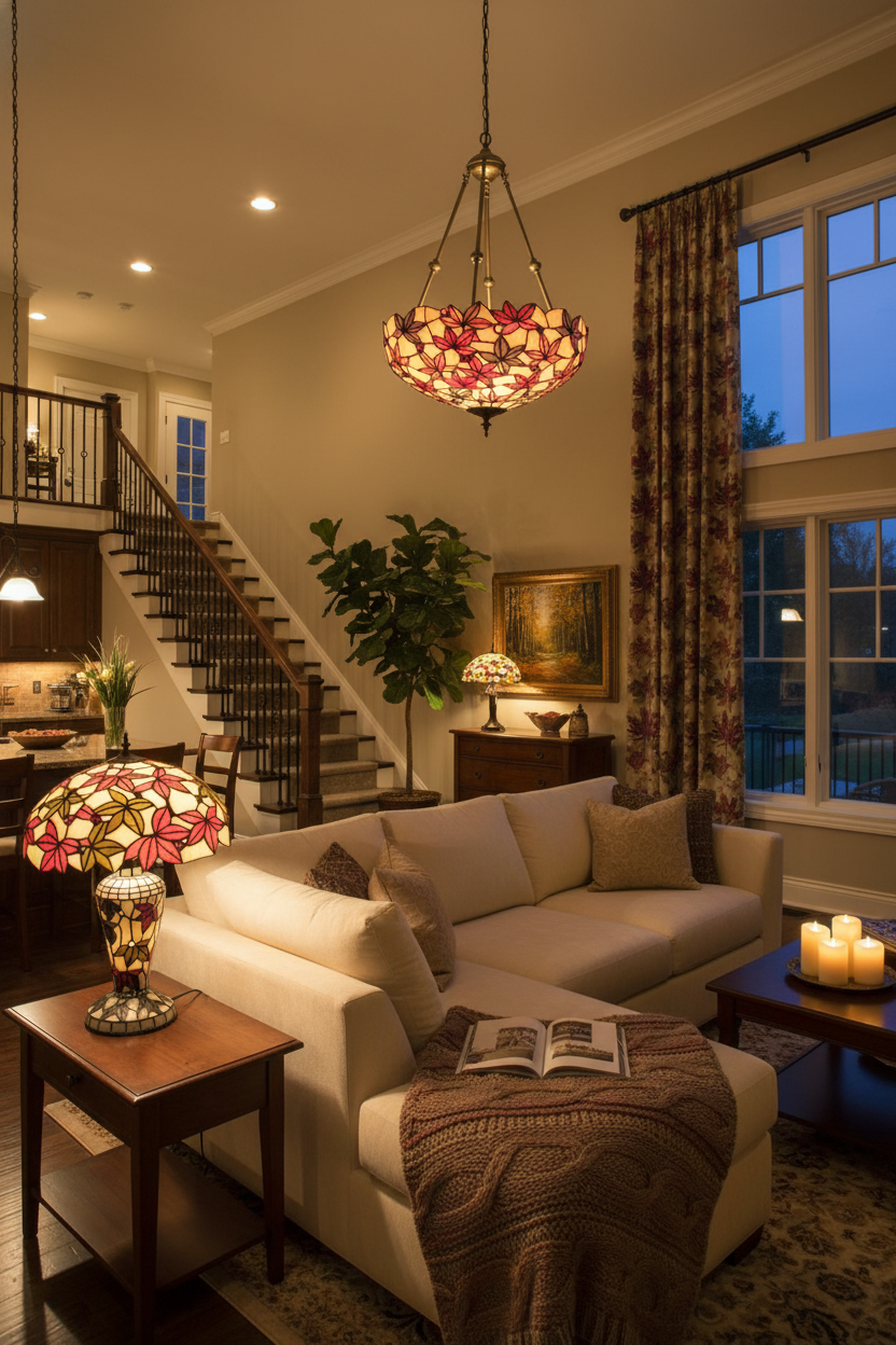 Великолепный декоративный эффект дарит интерьеру лампа Тиффани. Яркие стекла, собранные в фантастически сказочном плафоне, пропуская свет, дарят хорошее настроение и атмосферу загадки. Сложные по цвету и фактуре цветные стекла в сочетании с тонкой ручной работой представляют собой произведение, повторить которое невозможно. Лампы Тиффани являются не только беспроигрышным вариантом декорирования помещения, но и красноречиво говорят о тонком вкусе хозяев интерьера.