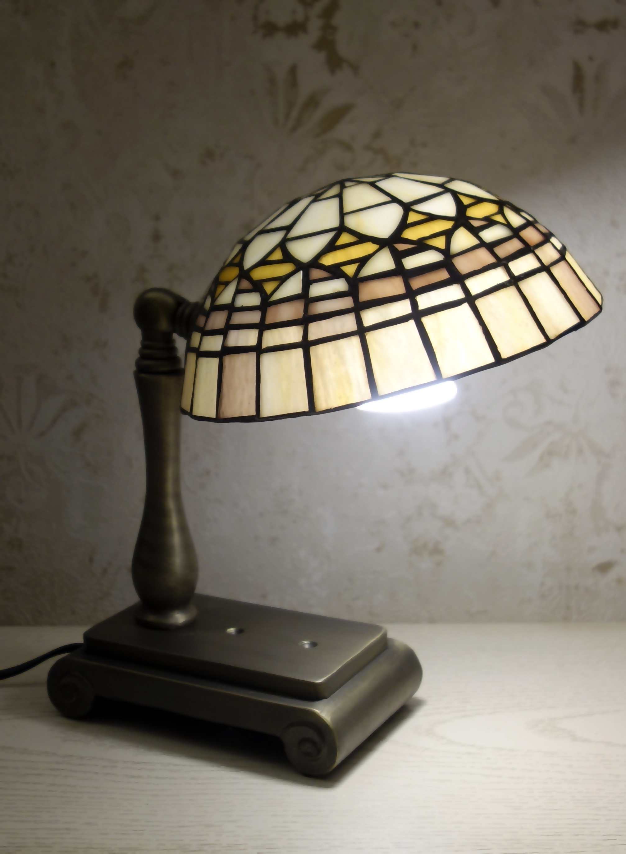 Создайте атмосферу уюта и вдохновения в своем кабинете с помощью этой великолепной настольной лампы Тиффани. Ее уникальный витражный абажур, выполненный в классических мотивах, рассеивает теплый, приглушенный свет, идеальный для долгих часов работы или чтения. Это не просто лампа, а произведение искусства, которое преобразит ваш рабочий стол.