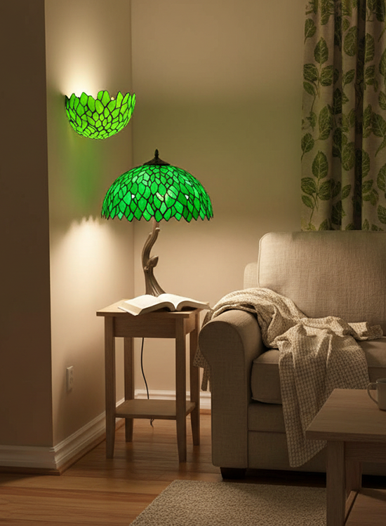Плафон лампы изготовлен из витражного стекла. Ножка - металл, цвет-бронза. Переключатель на шнуре