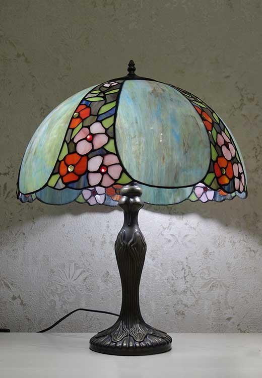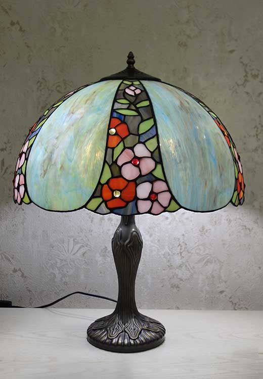 Диаметр плафона 46см высота 60см лампочки 2*100BT Е-27 Ножка - металл, стилизована под бронзу. Переключатель на проводе.