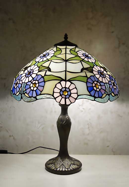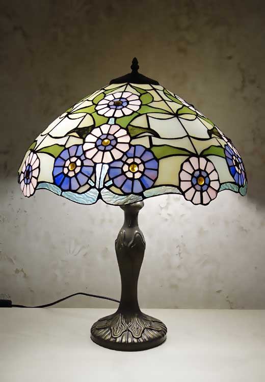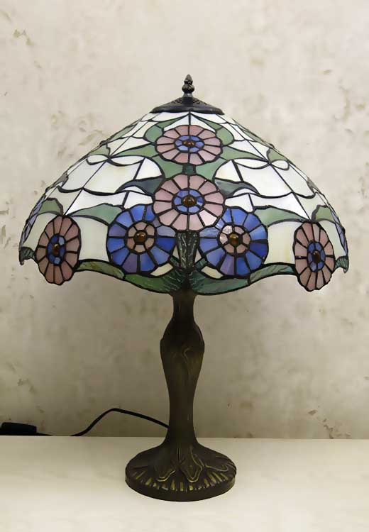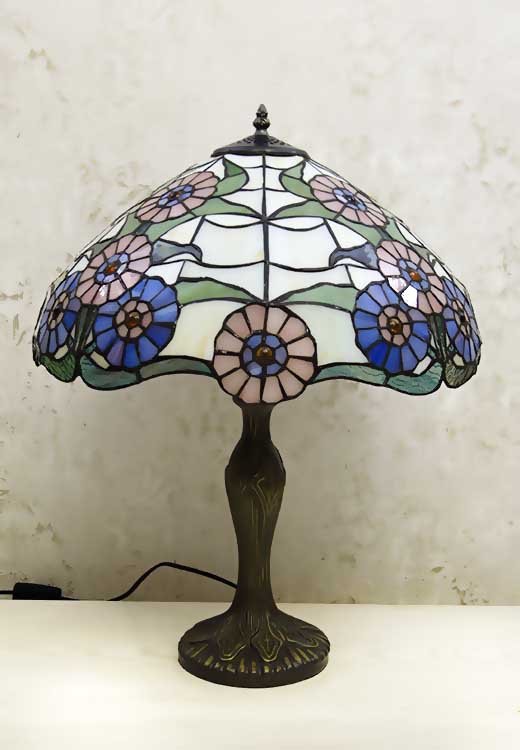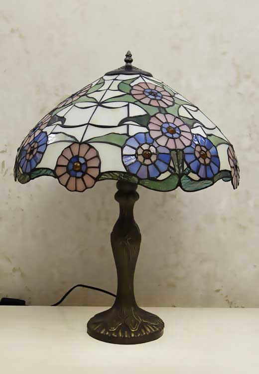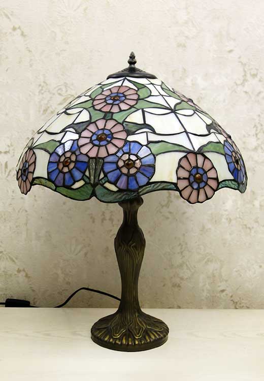 Диаметр плафона 46см высота 60см лампочки 2-60BT Е-27 Классическая металлическая ножка с переключателем на проводе. Витражное стекло, ручная работа