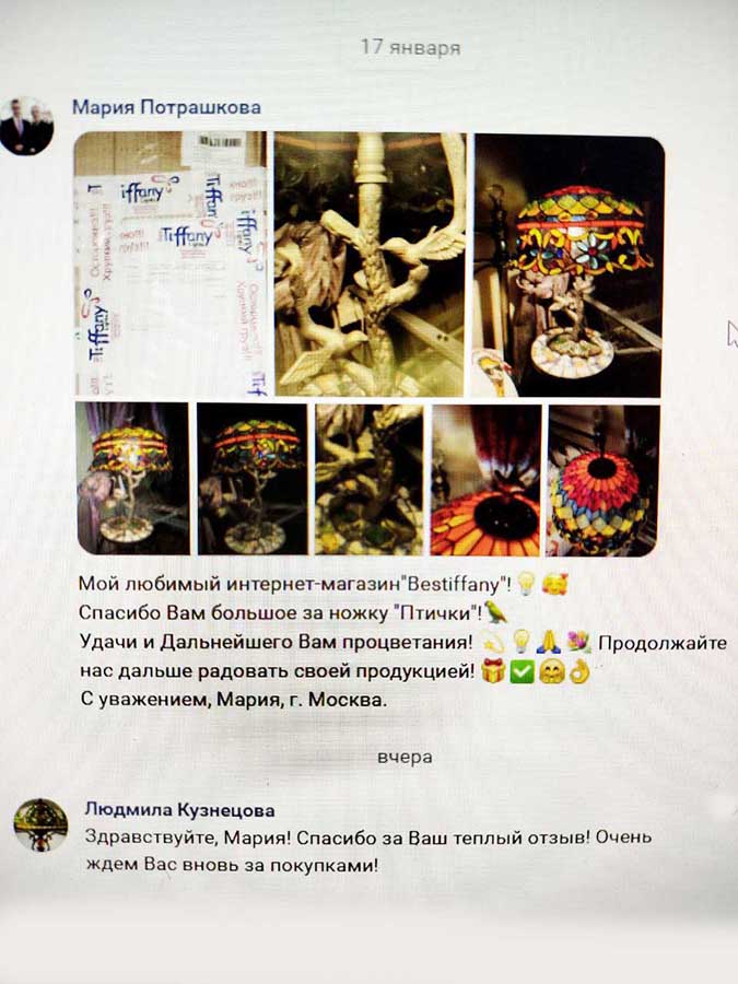 Дорогие покупатели! Присылайте фото светильников в вашем интерьере! С радостью опубликуем на сайте! Можно почтой-bestiffany@mail.ru, можно на WhatsApp, Telegram по номеру: 89112383494. Заранее - спасибо!