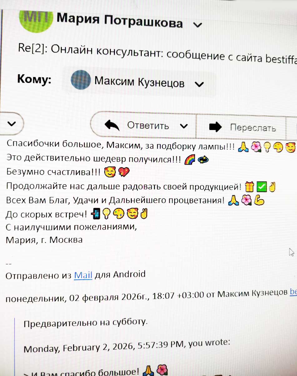 Большая благодарность покупателю: Марии из Москвы за фото лампы