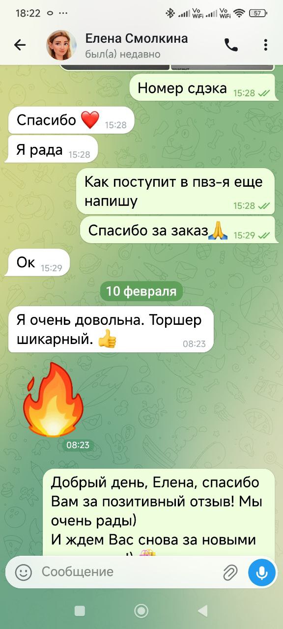 Благодарим Елену Смолкину из Москвы за теплый отзыв о торшере