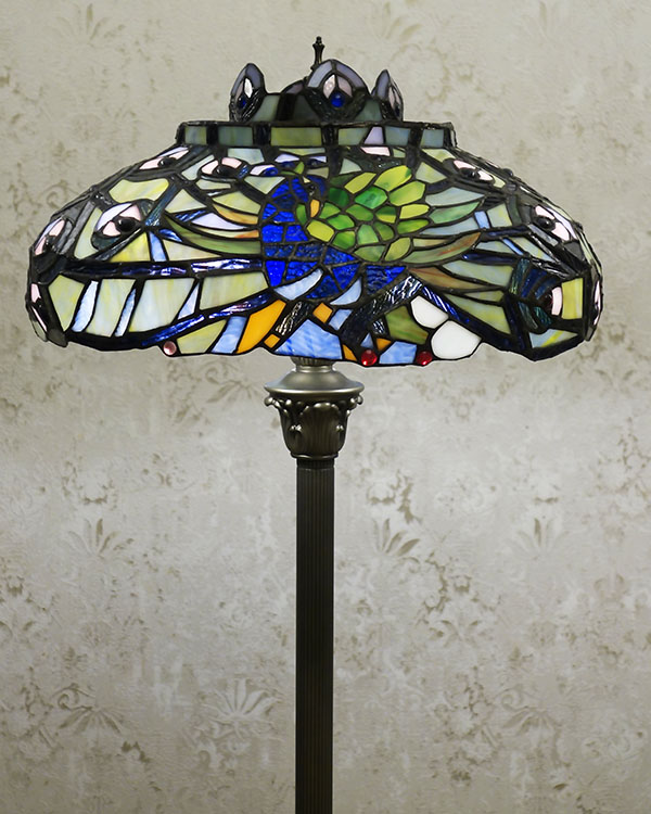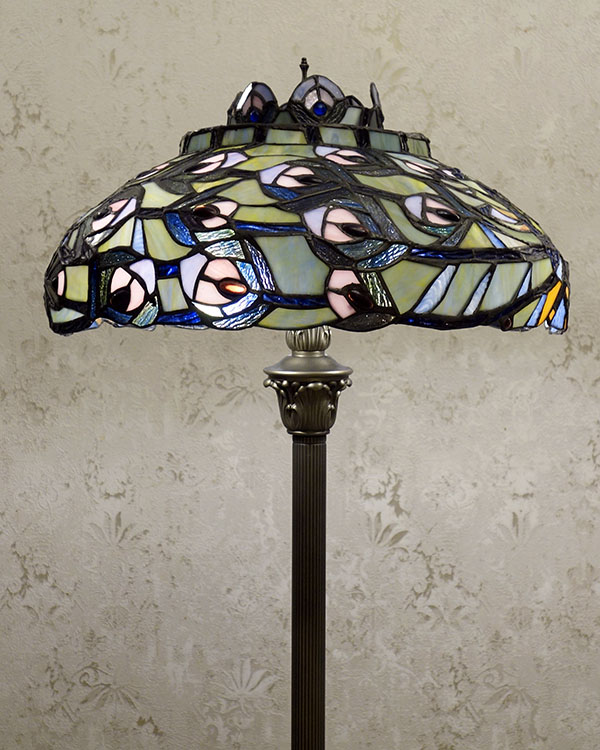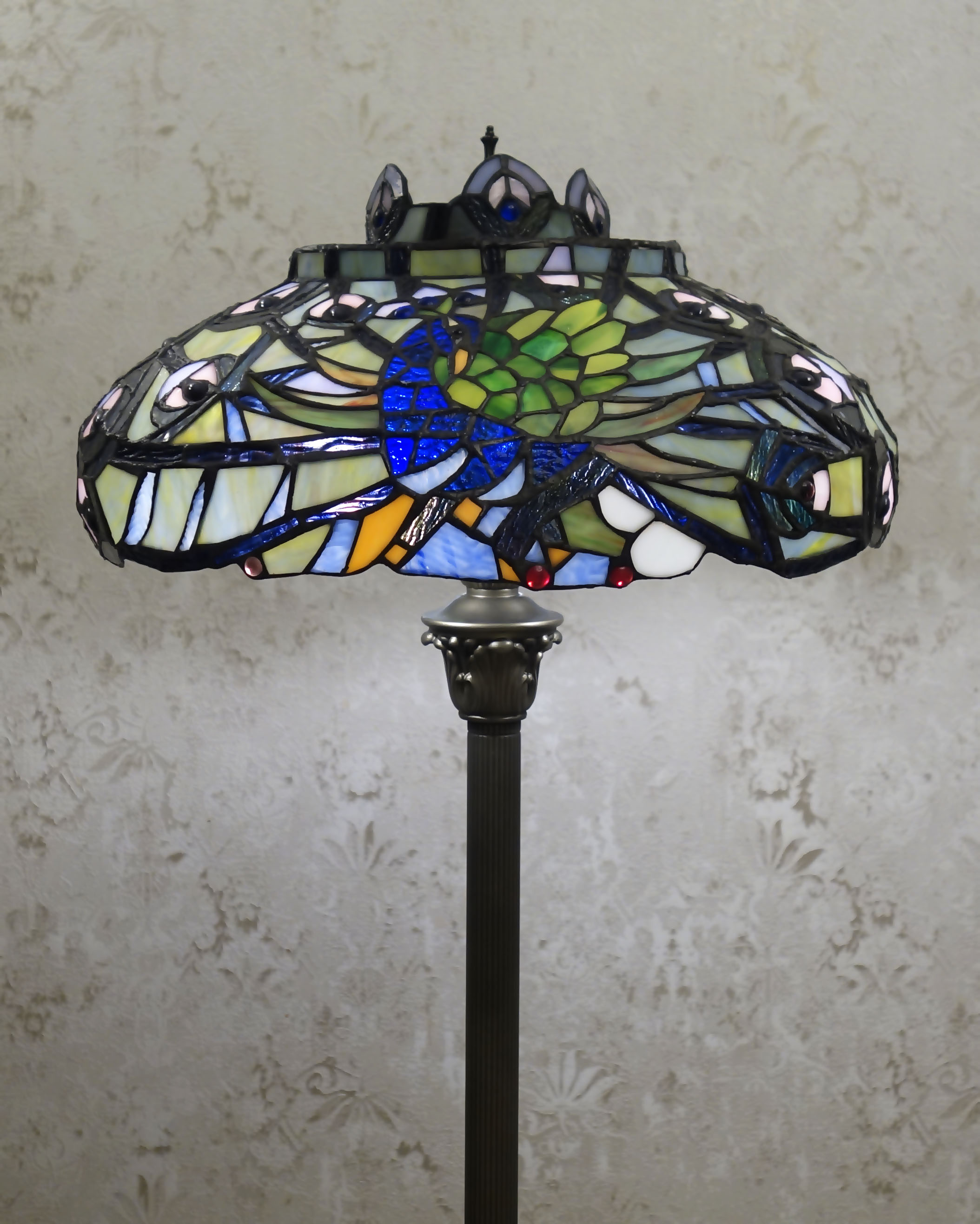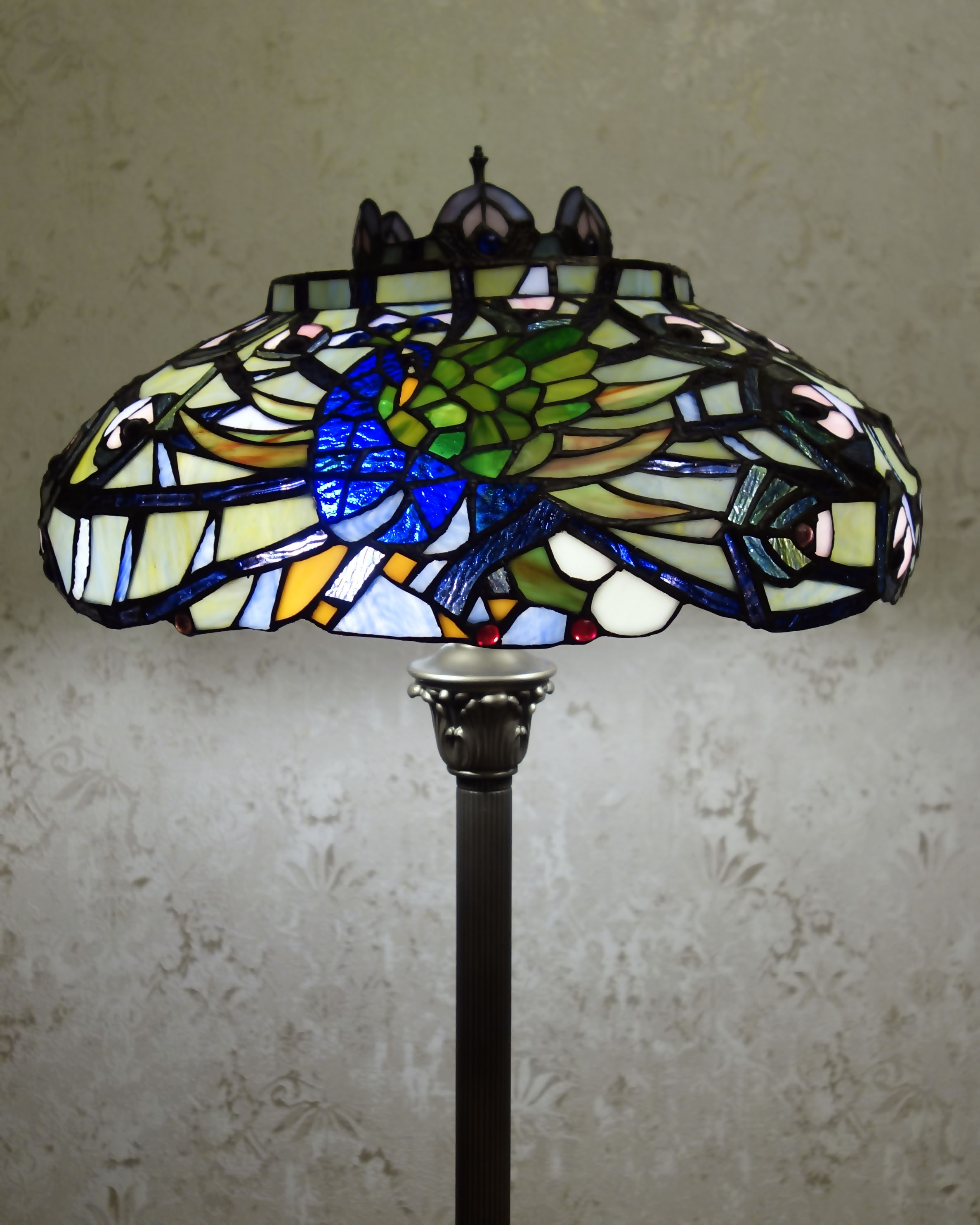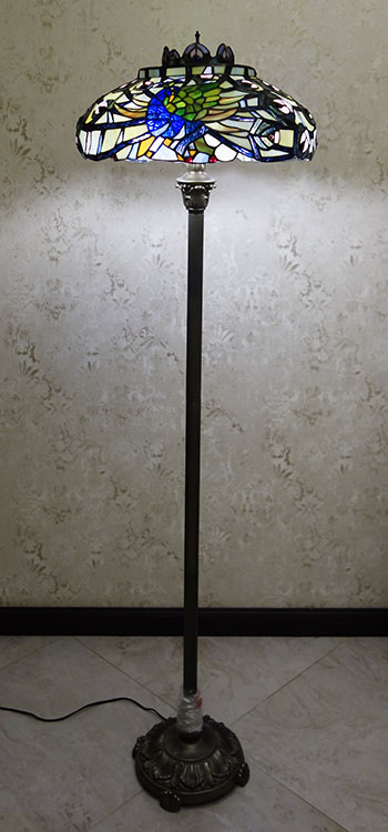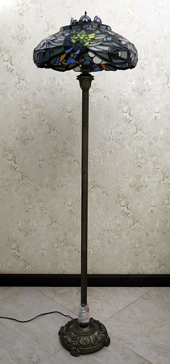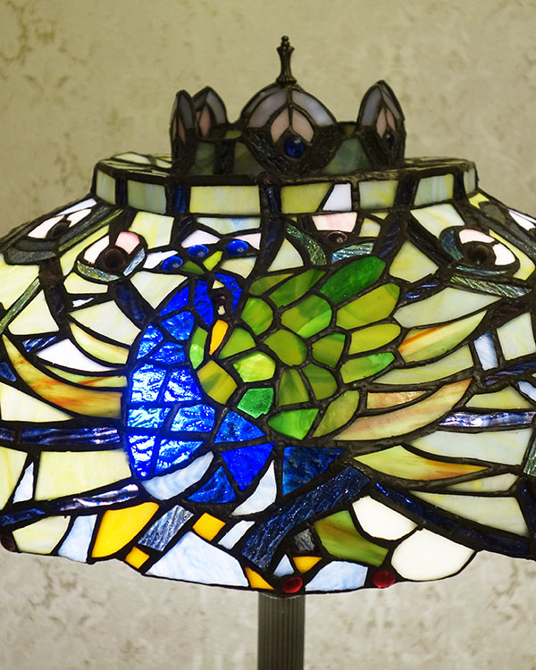 Каждый фрагмент стекла, тщательно отобранный и соединенный вручную, играет свою уникальную роль в общей композиции. Оттенки синего, зеленого, красного и янтарного переливаются и смешиваются, создавая неповторимые узоры, которые оживают под лучами света. Этот эффект особенно завораживает в вечернее время, когда торшер становится не просто источником света, а настоящим арт-объектом, притягивающим взгляды и вызывающим восхищение. Широкая форма купола не только придает торшеру величественный вид, но и гарантирует мягкое, рассеянное освещение, которое не слепит глаза и создает ощущение комфорта и умиротворения. Он идеально подходит для создания интимной обстановки, будь то чтение любимой книги, романтический ужин или просто спокойный вечер в кругу семьи.