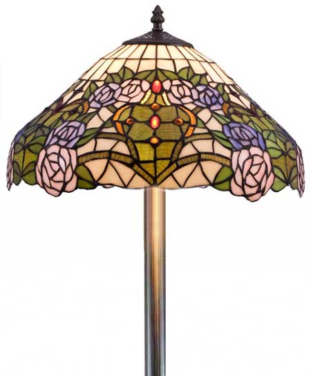 Плафон торшера выполнен из цветного витражного стекла. Основание бронзового цвета с ножным переключателем на шнуре. Работает от 220B