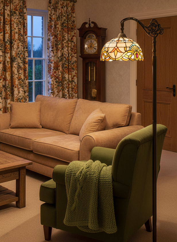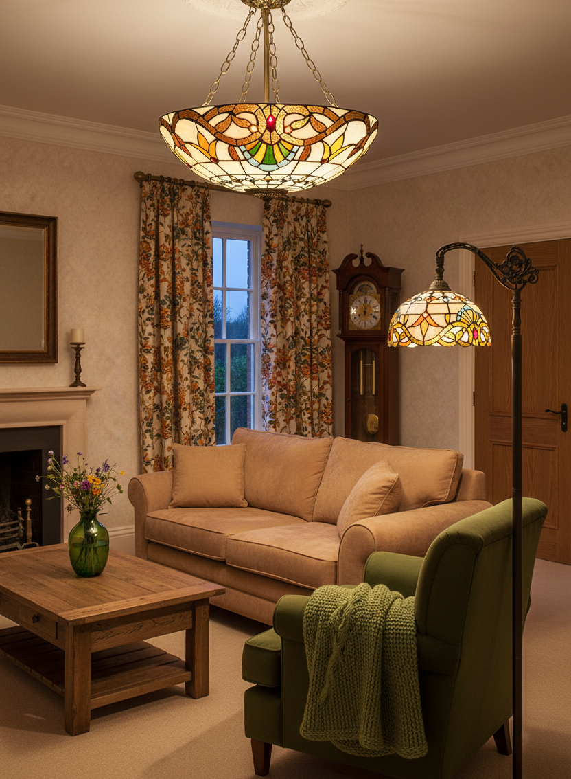 Каждый торшер в стиле Тиффани – это уникальное сочетание мастерства и красоты. Его абажур, выполненный из множества кусочков цветного стекла, собранных вручную по старинной технологии, создает завораживающие узоры и игру света. Теплые, насыщенные оттенки стекла наполнят вашу комнату атмосферой уюта и роскоши.
